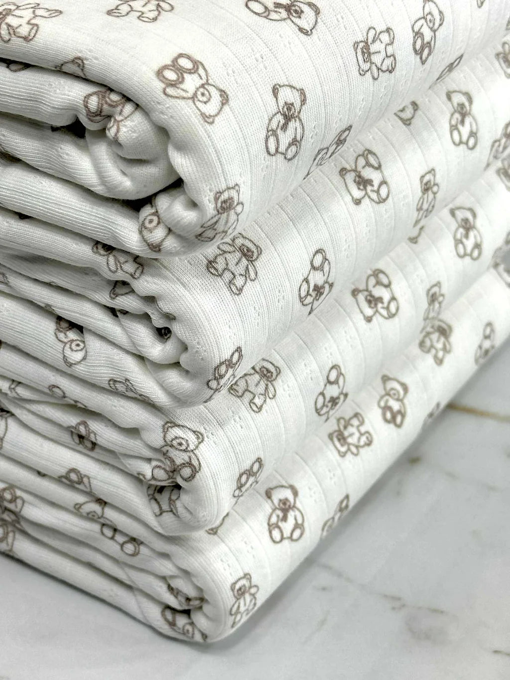 Megan- POINTELLE COTTON SPANDEX RIB TEDDY BEARS: size 3/6m summer sleep set free lettuce hem